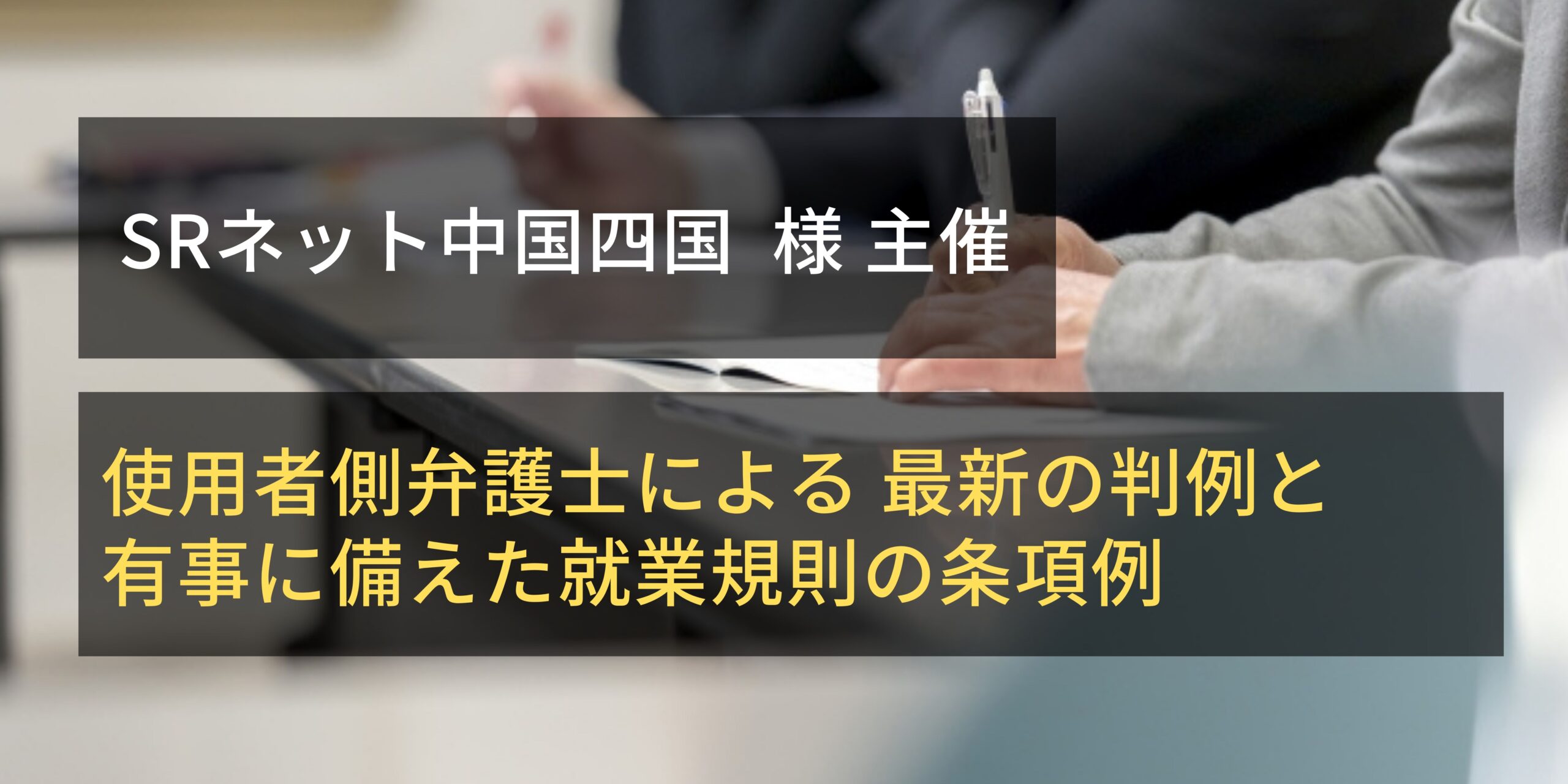 2025年11月15日(土)、当事務所弁護士 加藤 健一郎がSRネット中国四国様が主催された勉強会にて「使用者側弁護士による 最新の判例と有事に備えた就業規則の条項例」をテーマに講師を務めました。